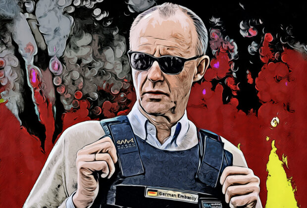 Kryptisch ist auch das Bild, das die CSU auf X postete. Merz mit schuss- und messersicherer Weste vor brennendem Schwarzrotgold. Als sei er auf dem Weg zum Weihnachtsmarkt. „Der deutsche Nero ohne Harfe“, kommentierte ein Spötter, die Söder-Truppe selbst lieferte bisher noch keine bessere Interpretation des Bildes.