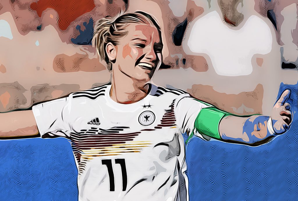 … Popp schießt… Tor! Tor! Tor! Deutschland ist im Endspiel. Na gut, beim zweiten Treffer hat sie geköpft. Alexandra Popp,
